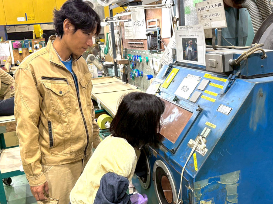 ・King of fire!!と言われるムラタの工場見学。1時間で機械・溶射・研削の3つの行程を見学します(無料)。
