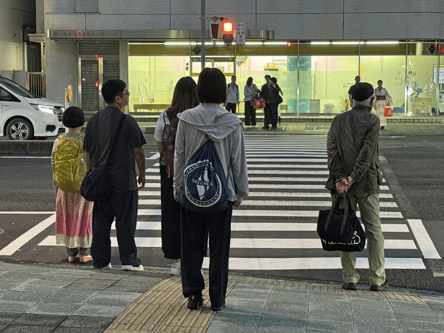 下の写真は、静岡市内の国道1号線で信号待ちをしている人たち。