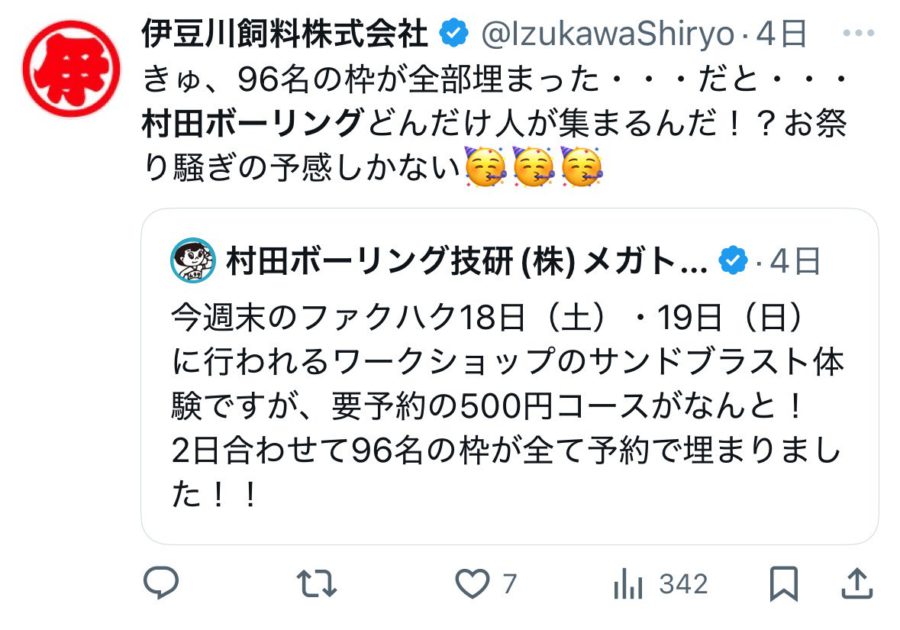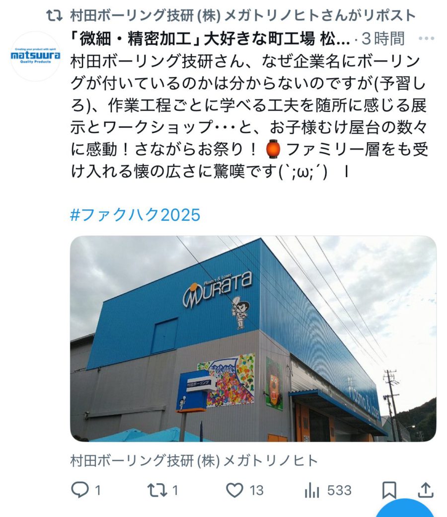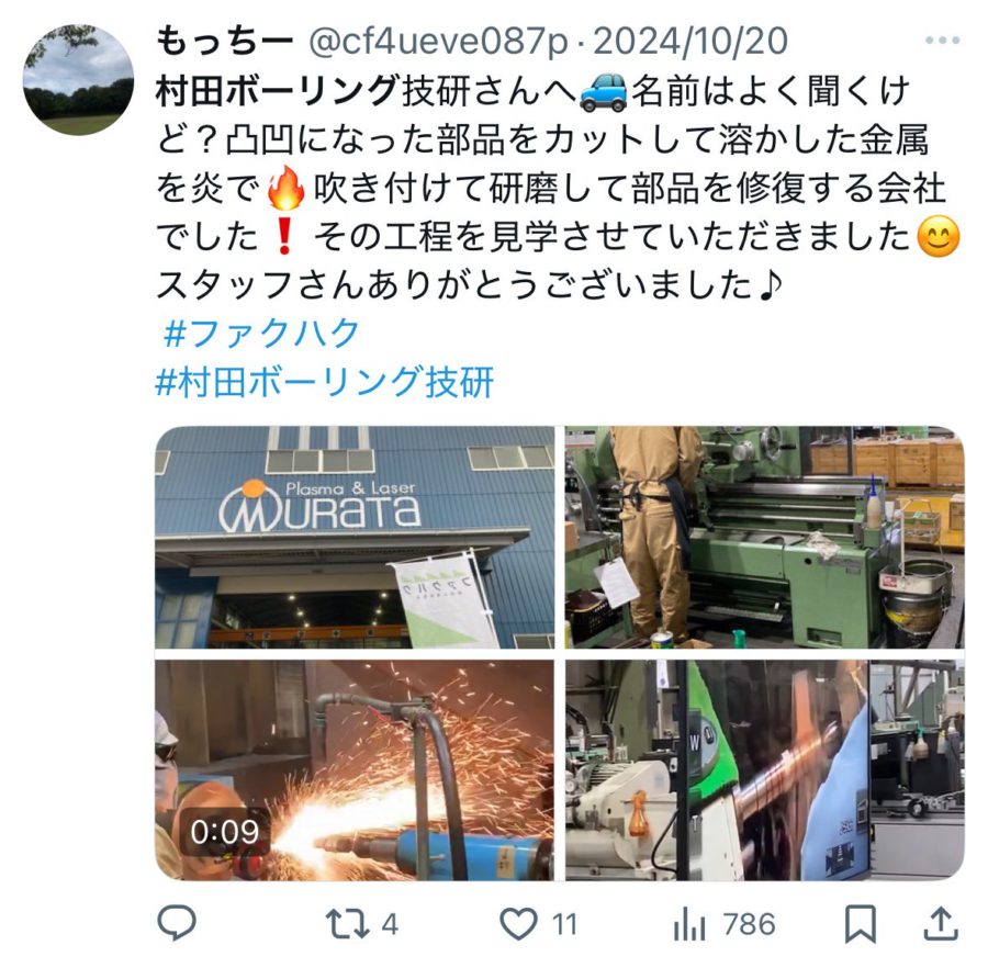 村田ボーリング技研にお越しくださった方が「X」に嬉しい投稿をしてくださいました。
