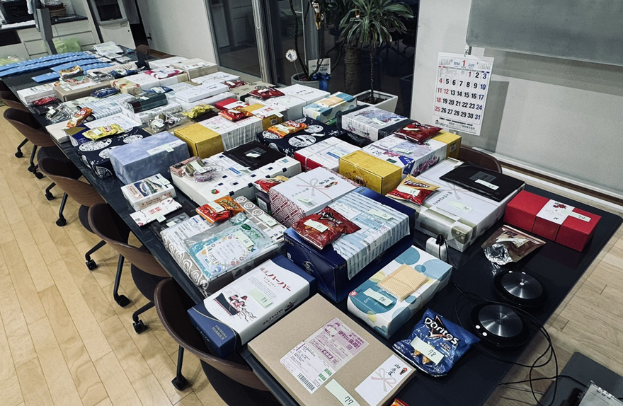 年に2回、お中元とお歳暮の時期に行われるこの抽選会は、仕事の区切りとしてだけでなく、社内にあたたかな空気が流れるひとときでもあります。
