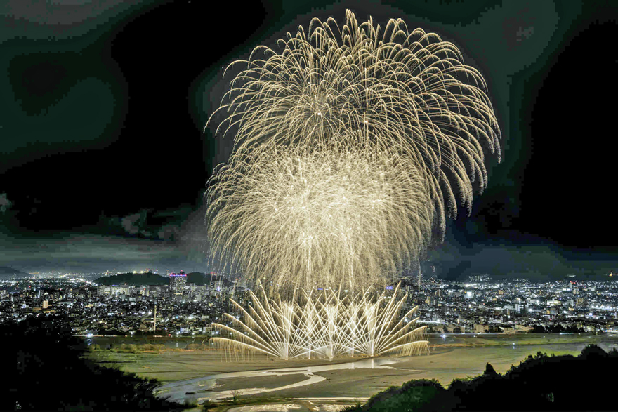 昨年、12月25日のクリスマスの日に安倍川河川敷にてサプライズ花火(1200発)を打ち上げました。