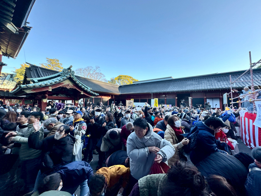 その後は、40数名の御年役の皆さまと共に、豆や福餅、お菓子をまいて、地域の皆さまの無病息災を願いました。