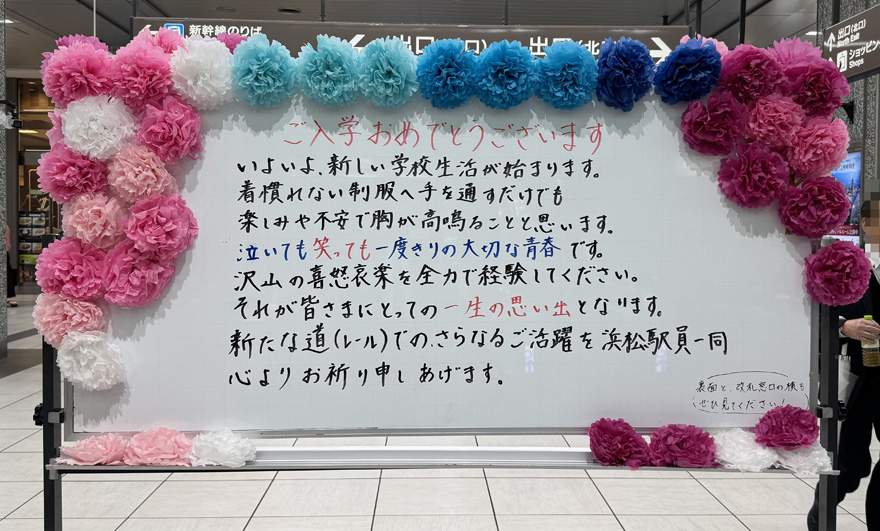 新たな道(レール)でのさらなるご活躍を、浜松駅員一同 心よりお祈り申し上げます。」