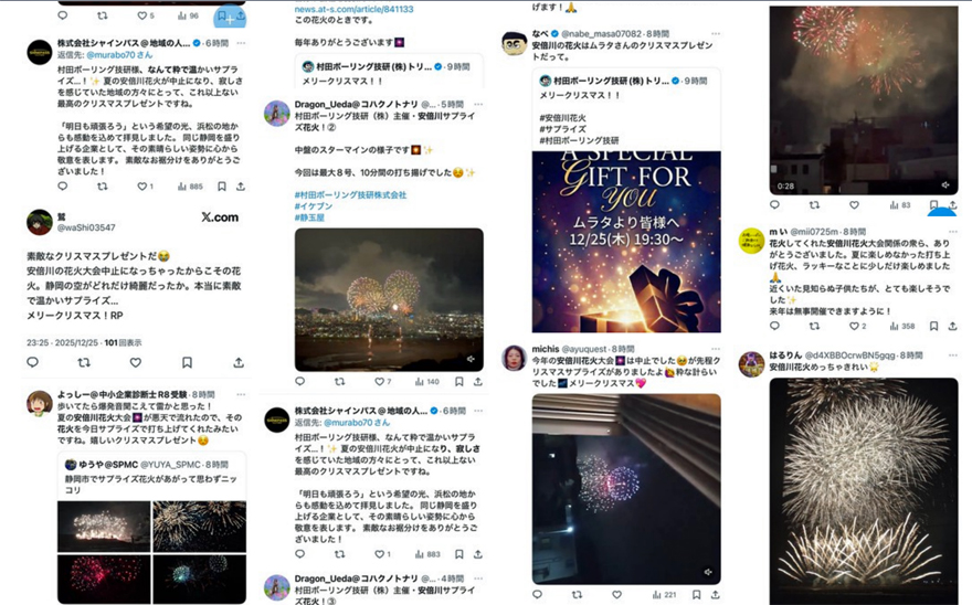 村田ボーリング技研も大スターマインを提供していただけに、関係者の皆さまや市民の皆さまの落胆は大きかったことと思います。